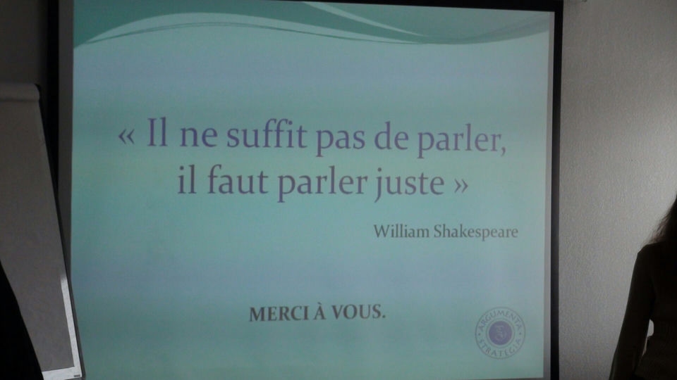Merci à notre intervenante, Pascaline GIROT, gérante de la société Argumenta Strategia, pour sa brillante et très interactive conférence durant laquelle a pu être abordé la délicate question qui est comment “présenter efficacement son projet ou sa société”. Cette problématique est d’autant plus importante que l’approche sera différente selon le public (investisseur, banquier, prestataires, etc) et la raison de la présentation (financement, prêt, etc).
