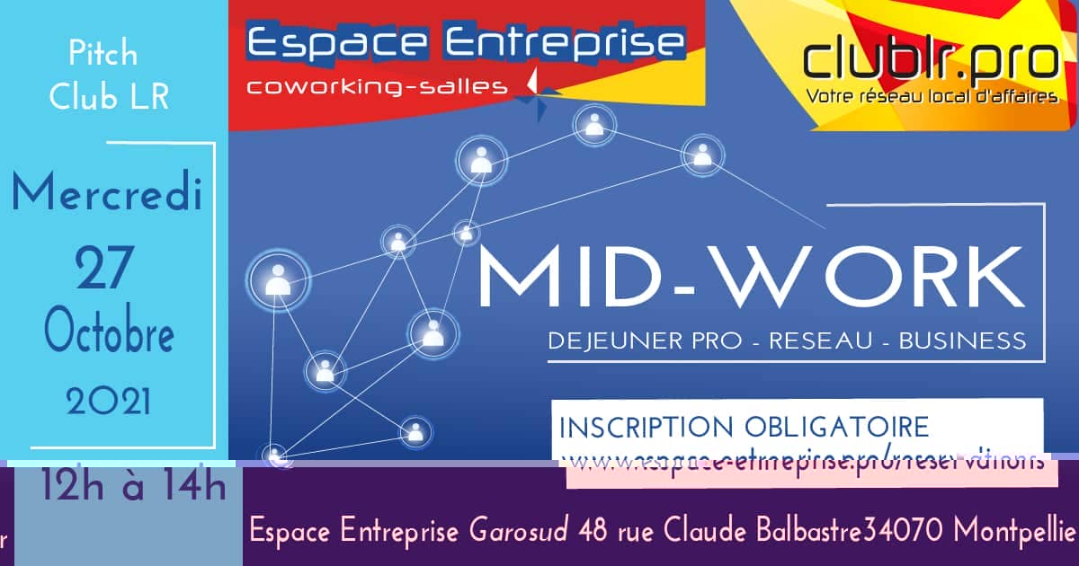 Le club LR vous invite à son Mid-Work du 27 octobre de 12h à 14h au centre de coworking Espace Entreprise Garosud situé au 48 rue Claude Balbastre
